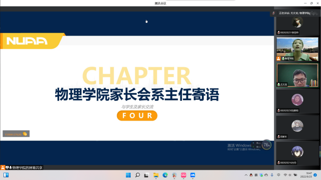 新学期开学前夕,为加强家校合作,有针对性地解答各阶段学生及家长关心关切问题,共促学生成长成才,亚洲色吧 召开了2019级、2020级线上家长会暨年级会。物理系主任尤文龙,应用物理系主任王吉明,班主任肖杨、张卫纯、徐峰、钱凤娇参会,并与学生、家长交流。辅导员胡诗帆和邢临川主讲。