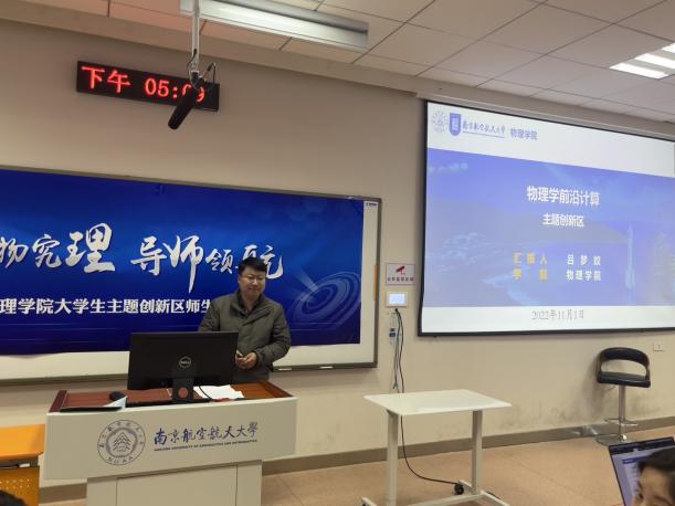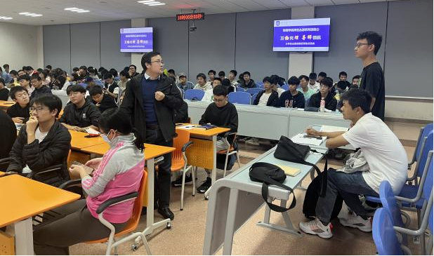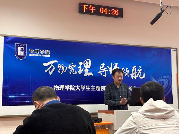 卢俊峰介绍了亚洲色吧 大学生主题创新区的建设情况、创新区对本科生创新实践能力培养的支撑,鼓励学生积极了解、投身科研科创,提升素质能力。九大主题创新区包括“物理科学与应用”、“紫外日盲探测”、“空天智能材料与器件”、“物理实验演示与探究”等。每个创新区老师代表分别介绍了创新区的基本情况、主要研究方向以及所在领域的前沿发展、实验室设备条件、人才培养模式以及可供本科生选择的科创项目。李伟伟老师介绍了跟航空学院合作研究的空天智能材料与器件课题;姜明明老师介绍了紫外探测器在军事与日常生活中的应用;王吉明老师介绍了创新区承担的物理学术竞赛与物理实验竞赛的指导;董大兴老师围绕各种物理感知元件介绍了传感器技术与应用;潘琦老师介绍了创新区正在研究开发的多种物理演示实验;伏洋洋老师介绍了创新区自主搭建的“声学结构功能材料实验室”;吕梦蛟老师介绍了超原子核第一性原理的计算研究;罗强老师介绍了量子物理领域的前沿研究。同学们了解到了大学学习的广泛性,更深刻的理解了自主学习的重要性,对今后的学习科研有了更加清晰的规划,增强了基础学科学习的信心。