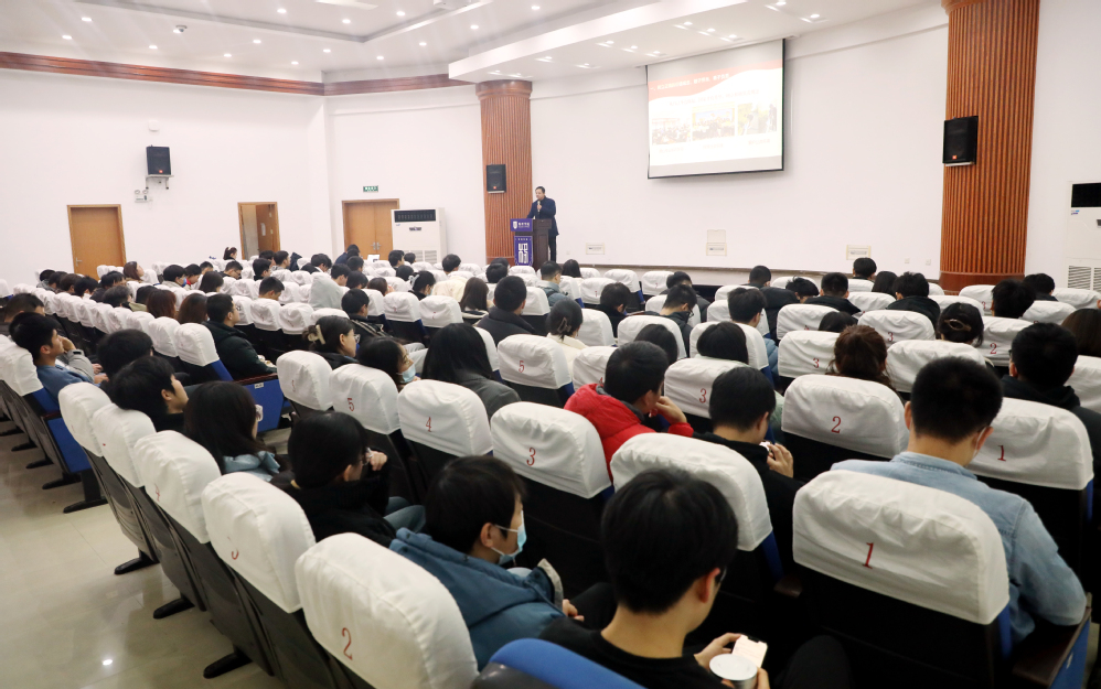12月8日下午,亚洲色吧 2022年秋季党员培训班、青马工程学员培训班专题讲座在将军路校区理学楼1楼报告厅顺利举行。亚洲色吧 党委书记陈修文、党委副书记欧珊、团委书记梁欢、本科生辅导员于金巧、本科生辅导员邢临川、全体学生党员以及本期青马工程学员培训班全体学员参加了本次培训。