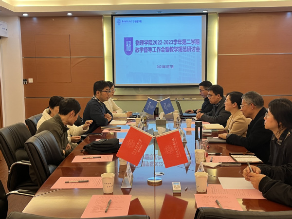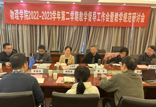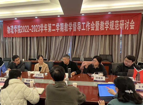 3月7日下午,物理学院2022-2023学年第二学期教学督导工作会暨教学规范研讨会顺利举办。校教师发展与教学评估中心副主任卢丽丽、校督导陈建平、物理学院副院长李晋斌、物理学院督导组成员及各系、中心主任等参加会议。会议由物理学院副院长李晋斌主持。