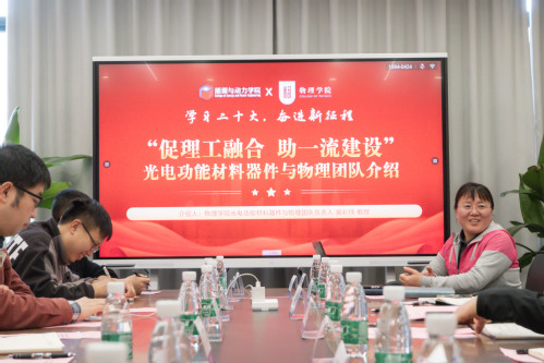 为深入学习贯彻党的二十大精神,不断提升基层党建工作水平,促进党建与业务工作深度融合,2023年3月28日,亚洲色吧 光电功能材料器件与物理研究团队党支部与能源与动力学院驭风排风系统纵向党支部开展了以“促理工融合,助一流建设”为主题的联学共建活动。亚洲色吧 副院长李晋斌,党委委员、“光电”党支部指导教师阚彩侠,能源与动力学院党委副书记樊小杰,副院长、“驭风”党支部指导教师徐惊雷,以及共建支部师生党员40余人参加本次活动。活动由“驭风”党支部教师党员吉嘉慧主持。