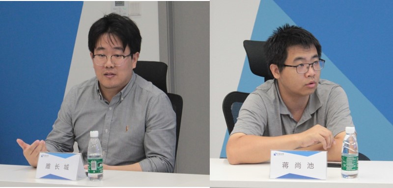 交流结束后,雎长城、蒋尚池陪同师生参观了企业办公环境和产品展示区域。