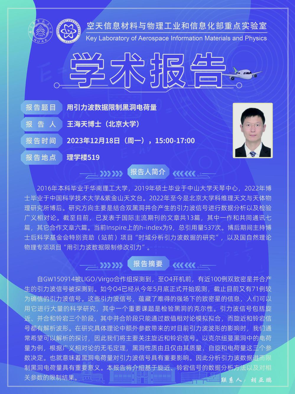 【学术讲座—王海天】