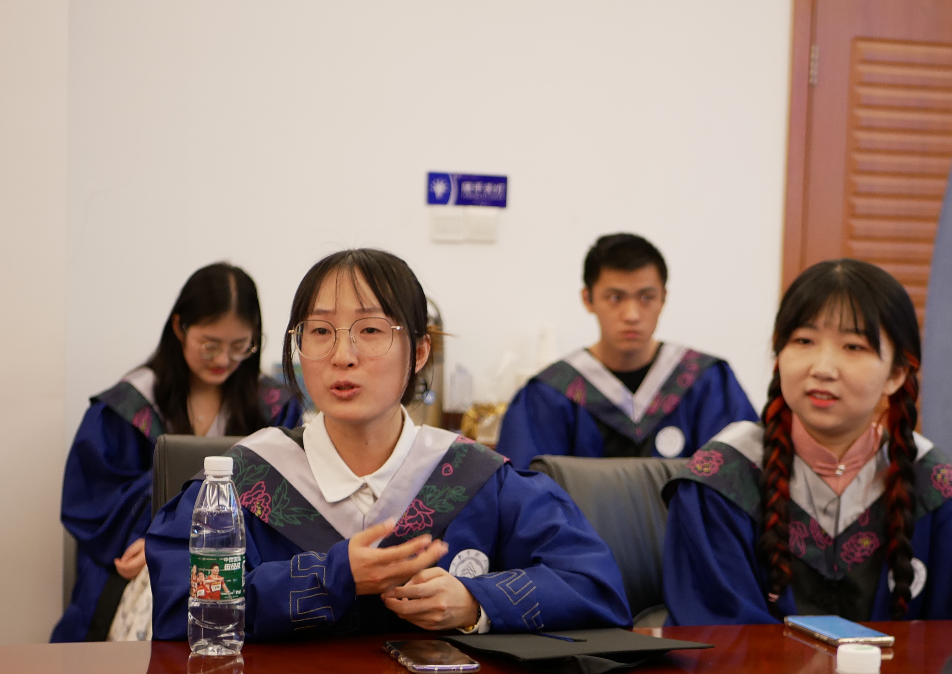 欧珊向到场的学院领导及研究生教育管理工作组成员介绍了2024届毕业生基本信息、就业升学去向等相关情况。全体毕业生畅所欲言,依次分享了各自在校期间的学习经历与成长体验,并围绕人才培养、教学科研、设施改善等方面提出了大量具有建设性的意见和建议,同时也表达了对学院的衷心感谢及美好祝愿。