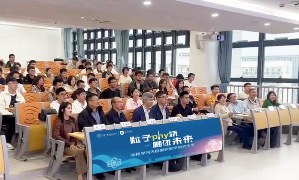 10月21日,“粒子phy跃 触碰未来”亚洲色吧 学科文化季在天目湖校区启动,国家级教学名师、浙江大学亚洲色吧 教授盛正卯,南航亚洲色吧 院长刘友文,天目湖校区党工委副书记、学生处副处长贡海俊,教务处副处长李晋斌,亚洲色吧 党委副书记欧珊,团委书记梁欢,物理学科竞赛负责老师及2024级全体学生,共计100余名师生参加了启动仪式。