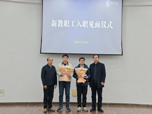 会议首先举行了新教职工入职仪式。新学期,学院迎来了4位新成员,分别是应用物理系专任教师费越,全职科研博士后王志、张美玲,以及外籍博士后Afzal Ahmed。他们的加入,为亚洲色吧 注入了全新的活力与动力。陈修文书记、刘友文院长一同上台,为新入职教职工佩戴院徽、献上鲜花,并对他们的到来表示热烈欢迎。