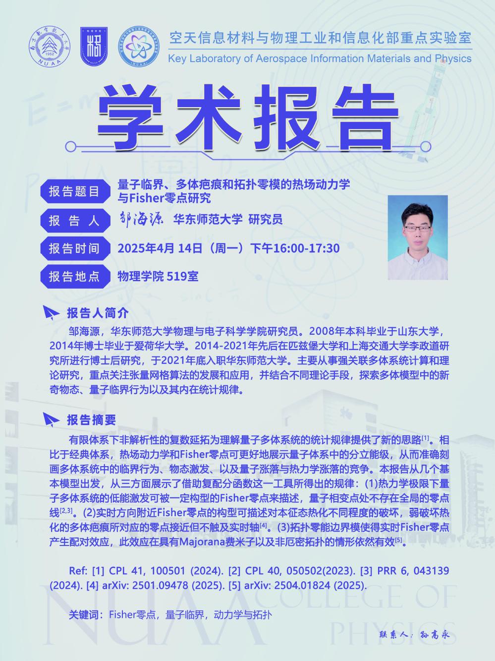 审核:量子临界、多体疤痕和拓扑零模的热场动力学与Fisher零点研究