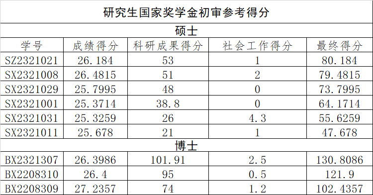 亚洲色吧 2025年研究生国家奖学金初审得分公示
