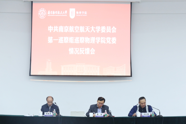 物理学院院长刘友文同志代表物理学院党委表示,今天的巡察反馈大会,既是集中体现校党委巡察成果的重要环节,也是学院领导班子和广大党员干部认真总结、学习思考、改进工作的重要契机。对于巡察反馈意见和相关要求,物理学院党委诚恳接受、照单全收,并将认真研究、深刻领会。今后,将提高政治站位、深化思想认识、坚决落实整改,并真正把巡察工作的成果落实到推进学院快速、高质量发展上来,以实干和实效,为加快建设航空航天民航特色鲜明的世界一流大学贡献理科力量,以优异的成绩庆祝党的二十大胜利召开。