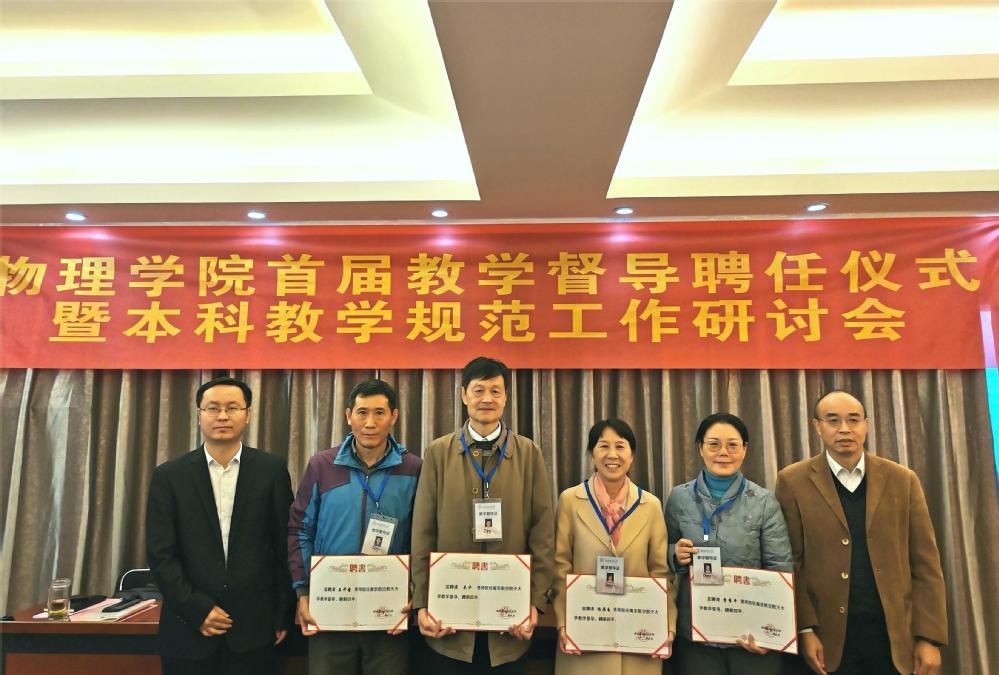 11月17日上午,物理学院首届教学督导聘任仪式暨本科教学规范工作研讨会顺利举办。校教师发展与教学评估中心主任朱建军、校督导组陈建平、物理学院院长刘友文、副院长李晋斌、物理学院督导组成员及各系中心主任等参加会议。会议由物理学院副院长李晋斌主持。
