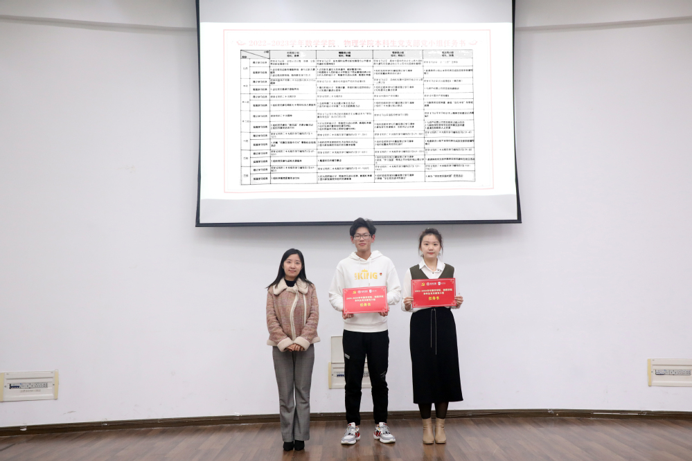 12月8日下午,物理学院2022年秋季党员培训班、青马工程学员培训班专题讲座在将军路校区理学楼1楼报告厅顺利举行。物理学院党委书记陈修文、党委副书记欧珊、团委书记梁欢、本科生辅导员于金巧、本科生辅导员邢临川、全体学生党员以及本期青马工程学员培训班全体学员参加了本次培训。