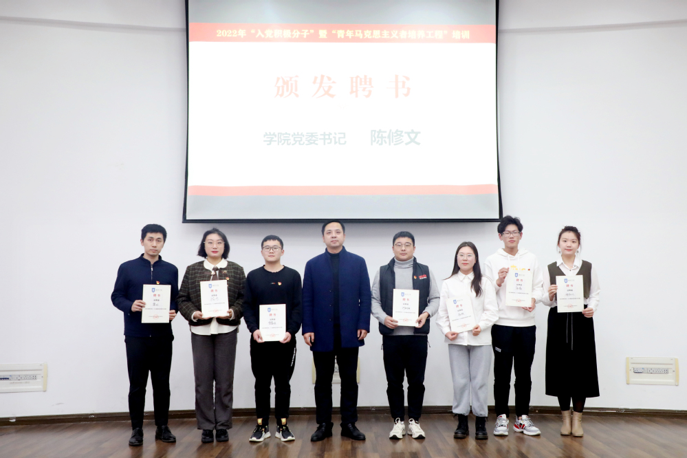 在培训会后,陈修文为全体辅导员、学生党支部书记颁发学院党的二十大精神青年宣讲团聘书;欧珊向低年级本科生党支部党小组发布任务清单;本期新发展的党员代表朱海铭带领全体党员集体面向党旗进行入党宣誓。培训会在庄严的气氛中圆满结束。