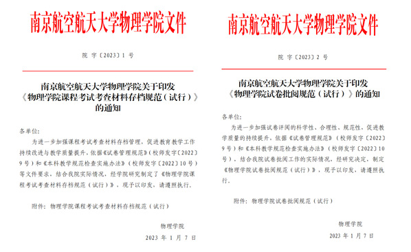 寒假期间,物理学院全体教师秉着认真、负责、严谨的原则,根据学院上学期出台的《物理学院试卷批阅规范(试行)》、《物理学院考试考查材料存档规范负面清单》与督导组的检查意见,对2021-2022学年第2学期的试卷、毕业设计归档材料完成自查自纠与初步整改工作。