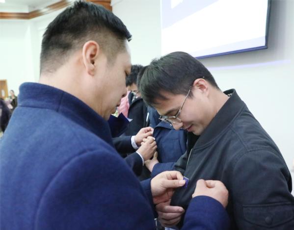 随后,物理学院还为2022年下半年以来新入职的教职工举行了新教职工入职见面仪式,陈修文书记、刘友文院长、欧珊副书记、赵志敏教授共同为新教工佩戴院徽并送上鲜花。