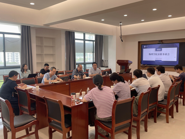 7月1日,物理学院召开了2023年暑假务虚会,学院领导班子、党委委员、院长助理、各系(中心)主任及学院科级干部参加了会议。会议围绕进一步推进物理学院高质量内涵式发展进行了深入讨论。会议由物理学院院长刘友文主持。