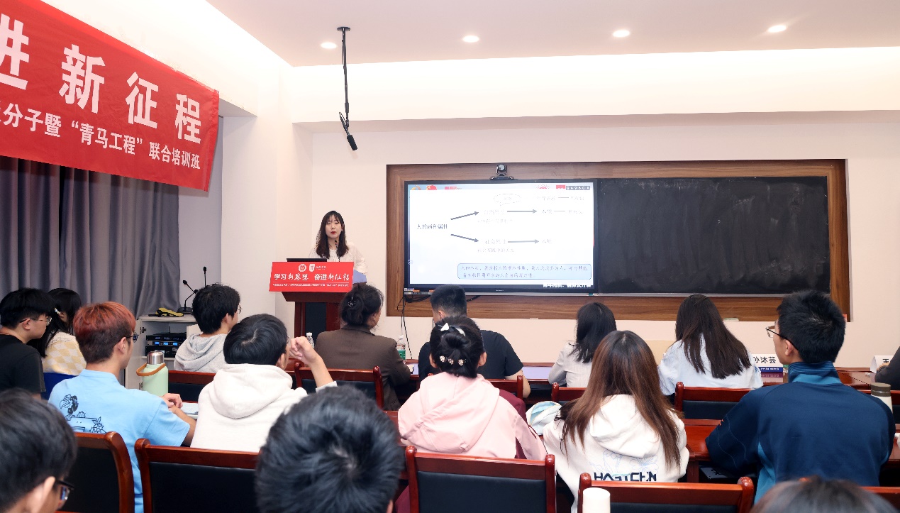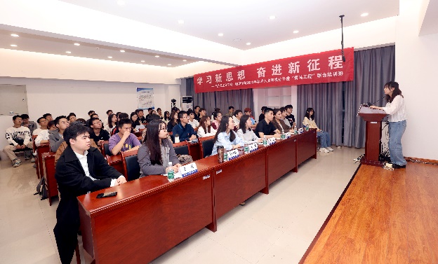 为深入学习宣传贯彻党的二十大精神,坚持以习近平新时代中国特色社会主义思想为指引,提升入党积极分子、学生骨干教育培养质量,11月5日晚上,物理学院和马克思主义学院在理学楼519报告厅联合举办2023年秋季入党积极分子暨“青马工程”培训开班仪式。马克思主义学院党委副书记阙愚、物理学院党委副书记欧珊、物理学院团委书记梁欢、马克思主义学院辅导员王佳、物理学院辅导员于金巧参加。活动邀请马克思主义学院青年教师、校“党的创新理论讲习团”成员孙沐芸开展专题培训。
