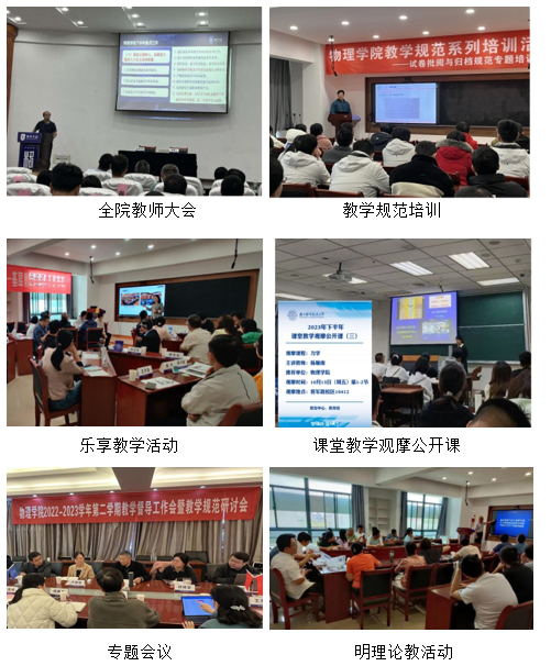 学院不断夯实课程建设,促进教学高质量发展。践行以学生为中心的教学理念,结合现代信息技术的发展,加强线上教学资源建设,全部课程实现教学资源网上分享。创造性地开设了科艺交融的国家级一流课程《物理与艺术》、江苏省课程思政示范课程《文科物理》等文化素质类课程,在全国有一定的影响力;核心专业课力学、光电子学等5门课程获评省级一流课程;将新教学理念、相关科技发展及时融入教学资源建设,建成包括力学、光学、量子力学、电动力学、热统、光电子学、无损检测技术等主要专业课程在内的10门校级精品课程。《物理与艺术》等教材更是开创了国内物理类素质教育先河,在全国有很强的示范引领作用。学院已编写出版教材、专著等8部,2023年三部教材获校十四五规划教材立项。