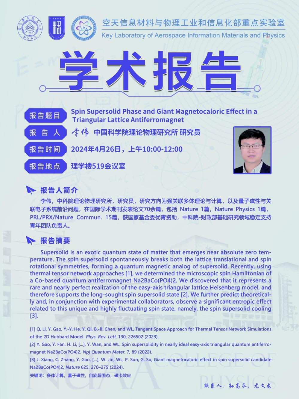 审核:Spin Supersolid Phase and Giant Magnetocaloric Effect in a Triangular Lattice Antiferromagnet