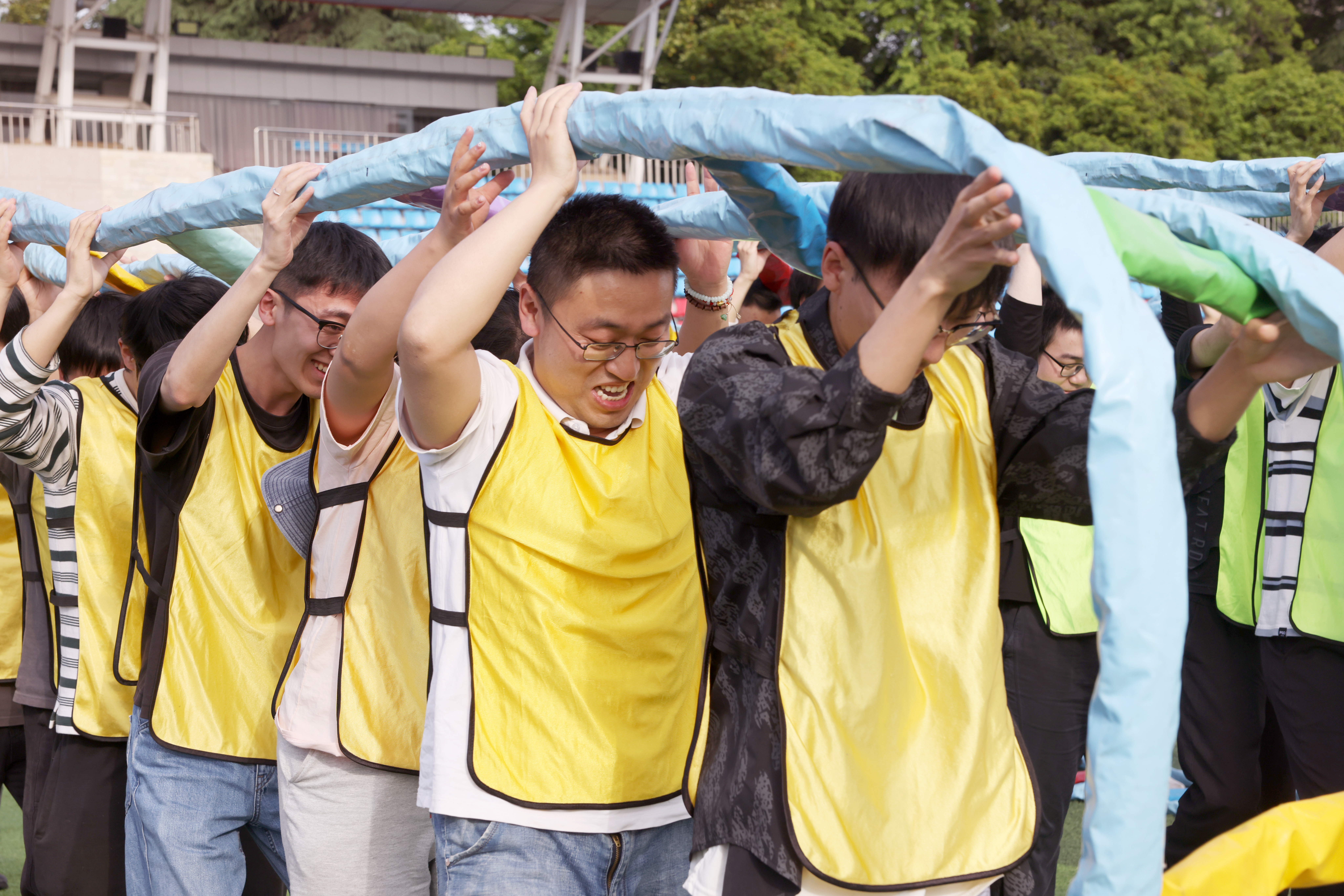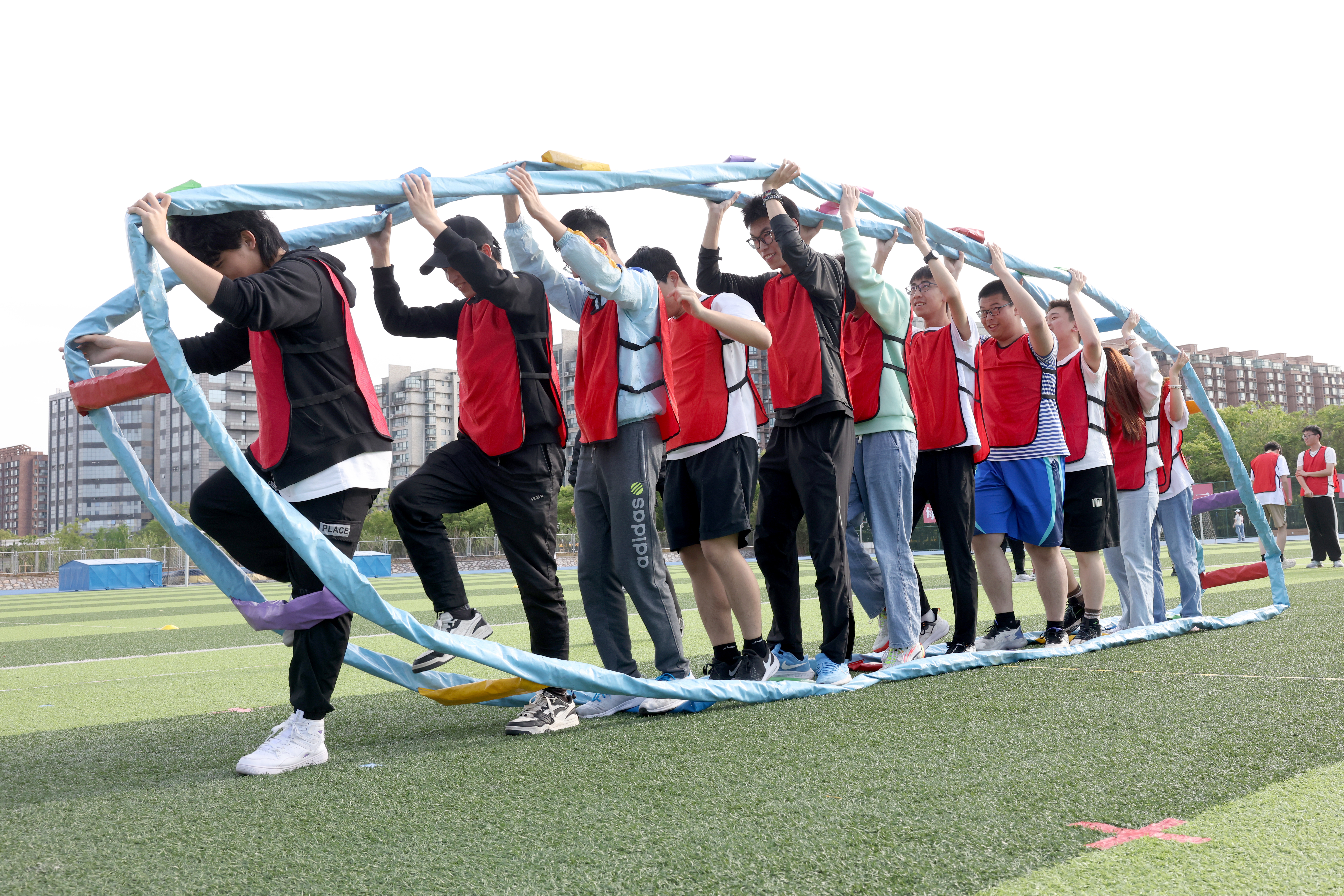 在“前赴后继 协力共进”项目中,四支代表队的选手们协调步伐,齐心稳进,随着游戏开始的信号发出,合力托举着道具前行。尽管阳光灼人刺目,大家都不畏困难,在游戏过程中培养默契,前进的步调愈发稳健一致,在越过终点线时,每个人都由衷发出欢呼。