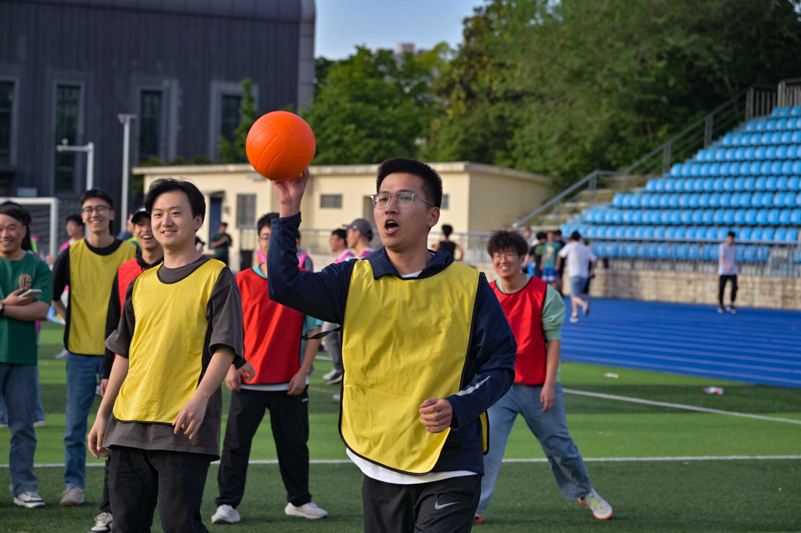 在“风气云涌 避球砺志”项目中,各代表队师生坚守自己的阵营,屏息凝视,以高度集中的精神关注着对手抛来的球并以矫健的身姿迅速躲避。场上时有因避闪不及被砸中而发出的惋惜,时有因接住队友抛来的球而发出的喝彩,大家都全身心投入到游戏中,肆意挥洒汗水,释放压力。