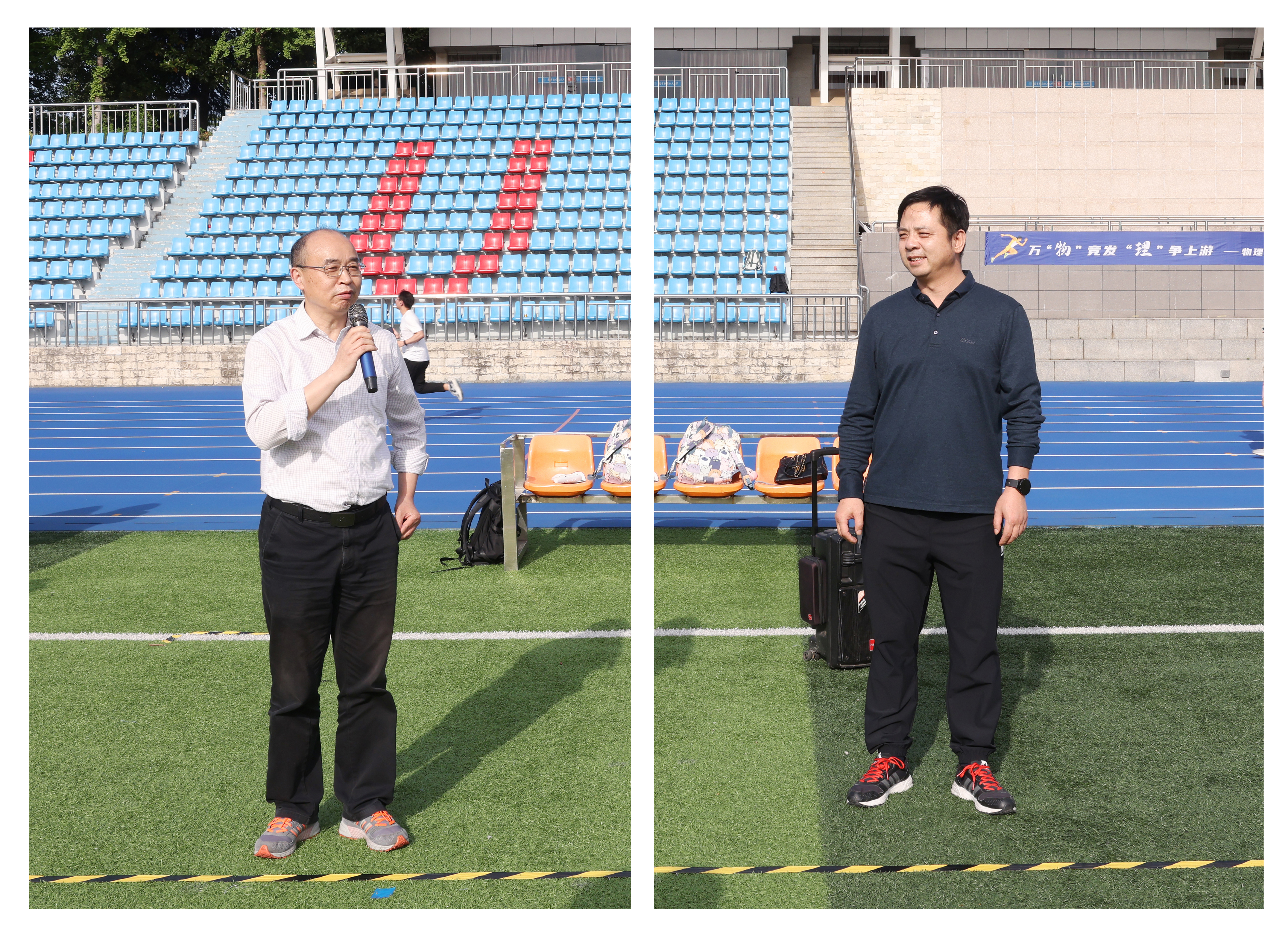 424日下午,物理学院在将军路校区西区田径场举办了万“物”竞发,“理”争上游师生趣味运动会。学院党委书记陈修文、院长刘友文、党委副书记欧珊、院长助理卢俊峰、院长助理吕梦蛟,研究生导师代表、本科生启明导师代表、全体辅导员以及100余名本研同学共同参加此次趣味运动会。