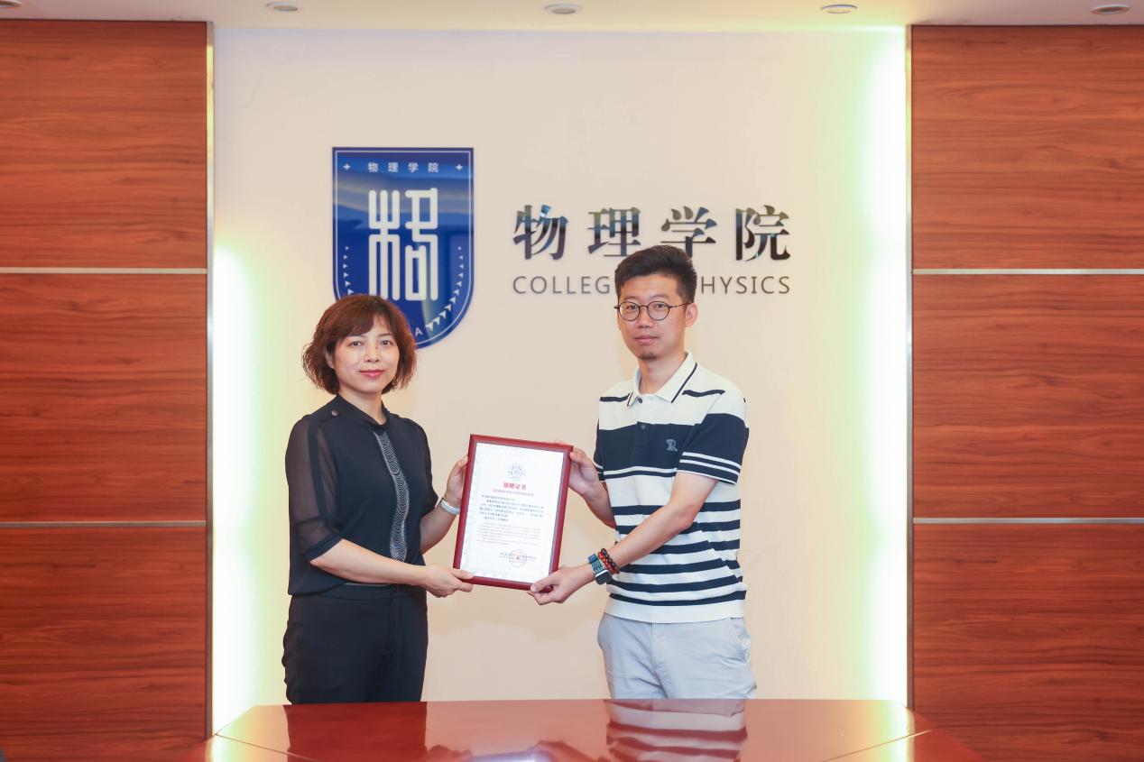 6月20日上午,南京航空航天大学“深圳耕读奖学金助学金”捐赠仪式在物理学院举行。深圳耕读教育咨询有限公司创始人、物理学院2009级本科生校友刘炳林,校发展联络部部长、教育发展基金会秘书长李和新,物理学院党委书记陈修文,校发展联络部副部长周佼佼,物理学院党委副书记欧珊,校教育发展基金会办公室主任卢一亭及相关学院校友工作联络员、资助干事等参加本次仪式。仪式由欧珊主持。