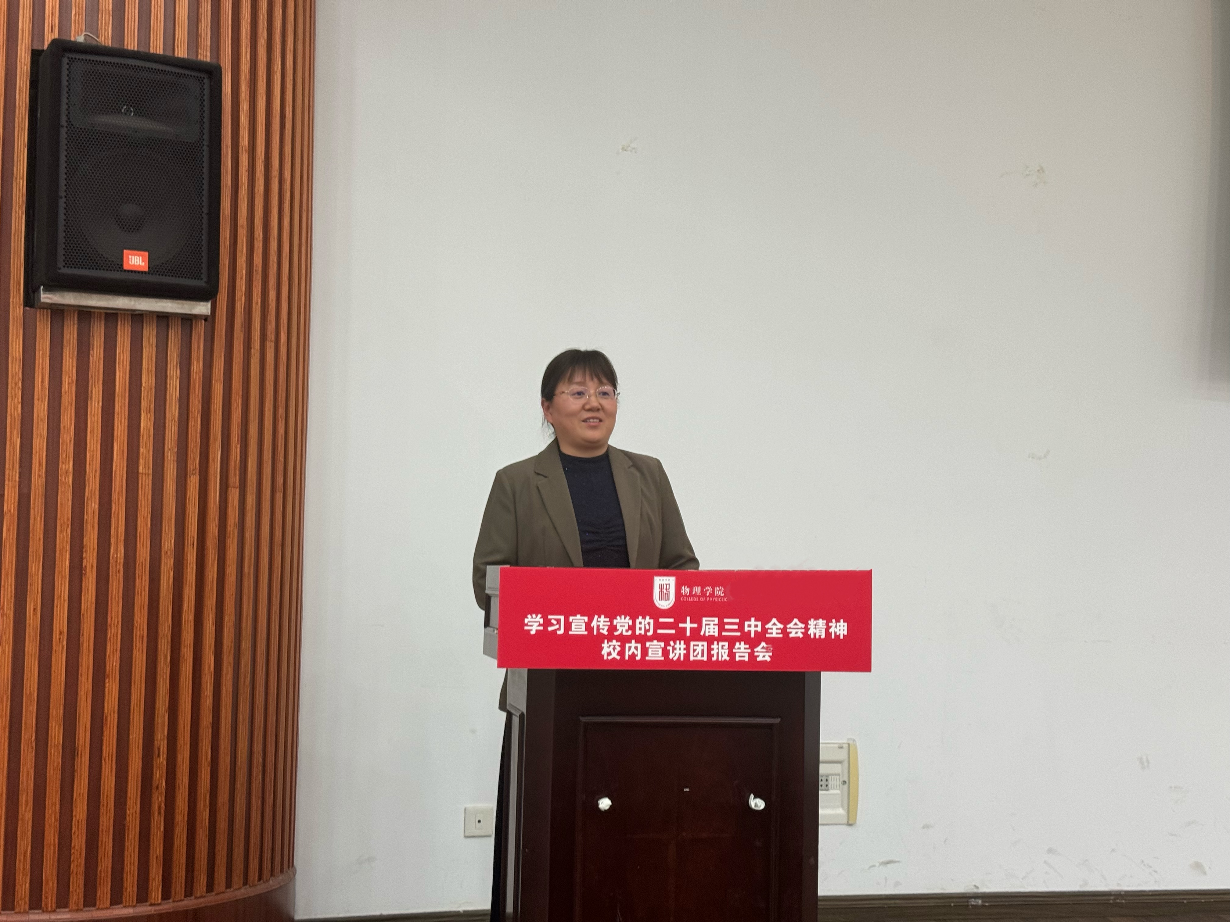 此次报告会视野开阔、内涵丰富、重点突出,对于帮助学院师生更加深入学习领会党的二十届三中全会精神具有重要指导意义。物理学院全体师生将把学习好宣传好贯彻好党的二十届三中全会精神作为当前和今后一个时期的重大政治任务,切实将学习成果转化为推动学院发展的具体举措,奋力谱写好学院高质量发展的新篇章。
