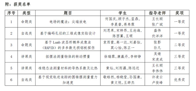 在学校教务处的大力支持和物理学院的精心组织下,我校共派出6支队伍参赛,其中3支队伍成功晋级全国总决赛,共获一等奖2项、二等奖1项、三等奖2项,优秀奖1项,同时我校成功摘得优秀组织奖。