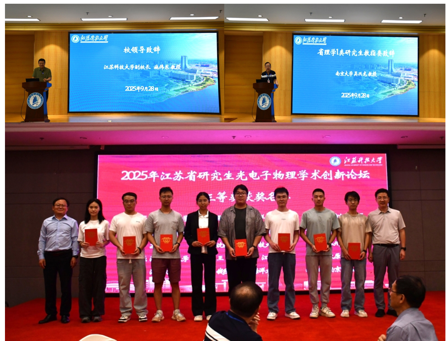近日,2025年江苏省研究生新材料设计科研创新实践大赛、江苏省研究生光电子物理学术创新论坛分别在镇江举办。我院研究生积极参赛,共荣获一等奖3项、二等奖10项、三等奖7项。