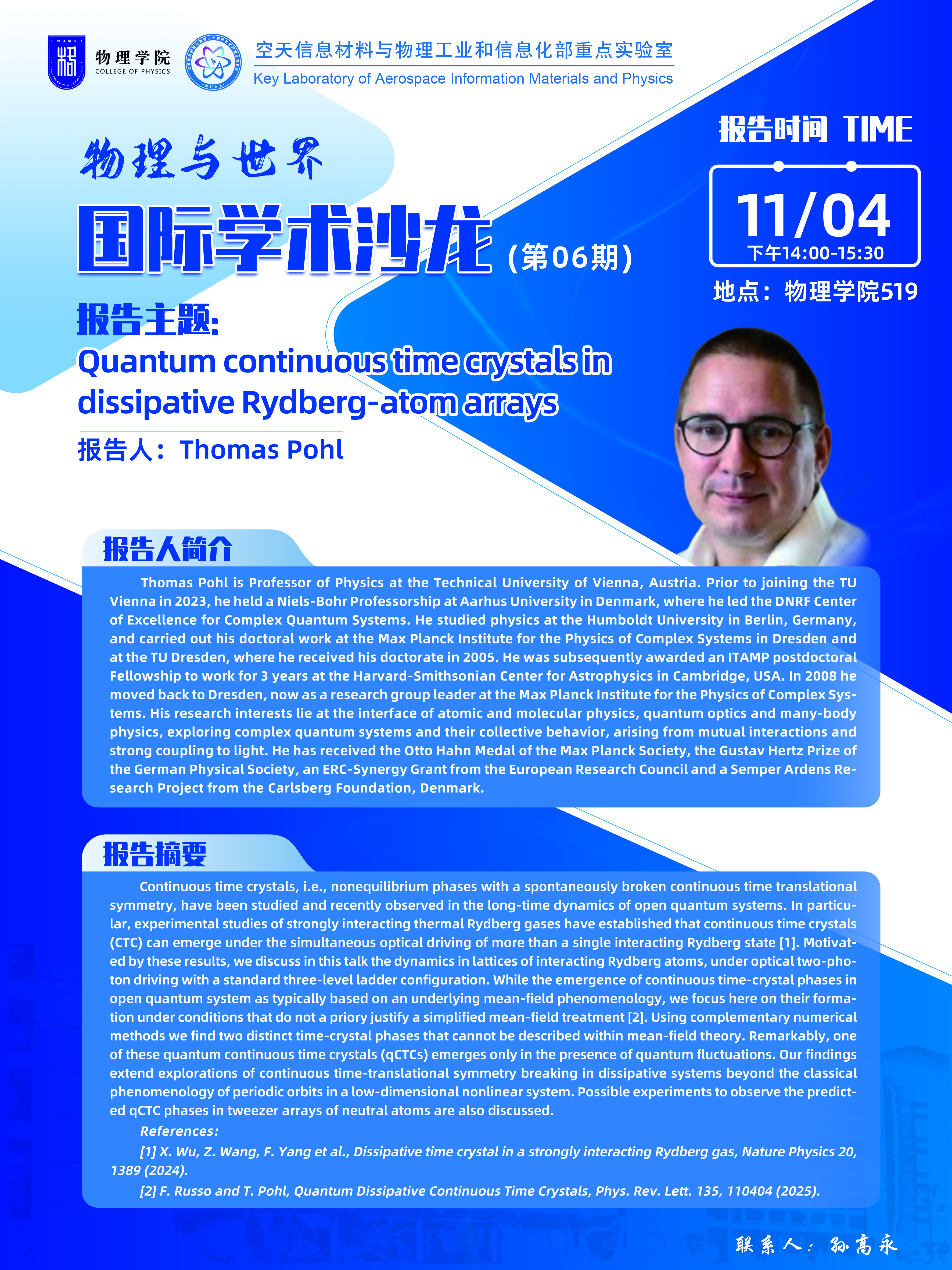 【“物理与世界”国际学术沙龙第06期—Thomas Pohl】
