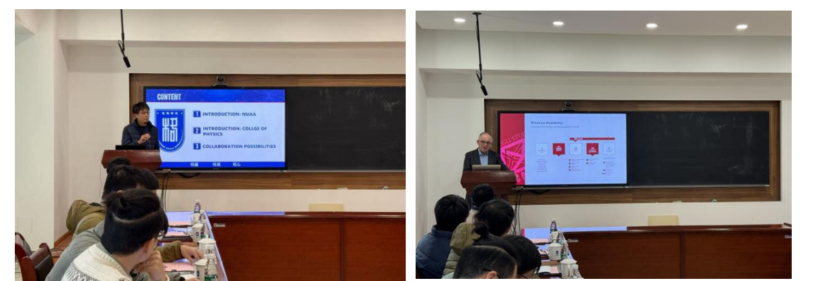 Giuseppe Gorini教授对我院的热情接待表示感谢,并从物理学科架构、课程体系、国际合作案例等方面介绍了米兰比可卡大学的办学特色和发展前景。他表示,对我院核物理、量子物理等研究领域展现出极大的兴趣,希望双方后续进行更为深入的交流与探讨。